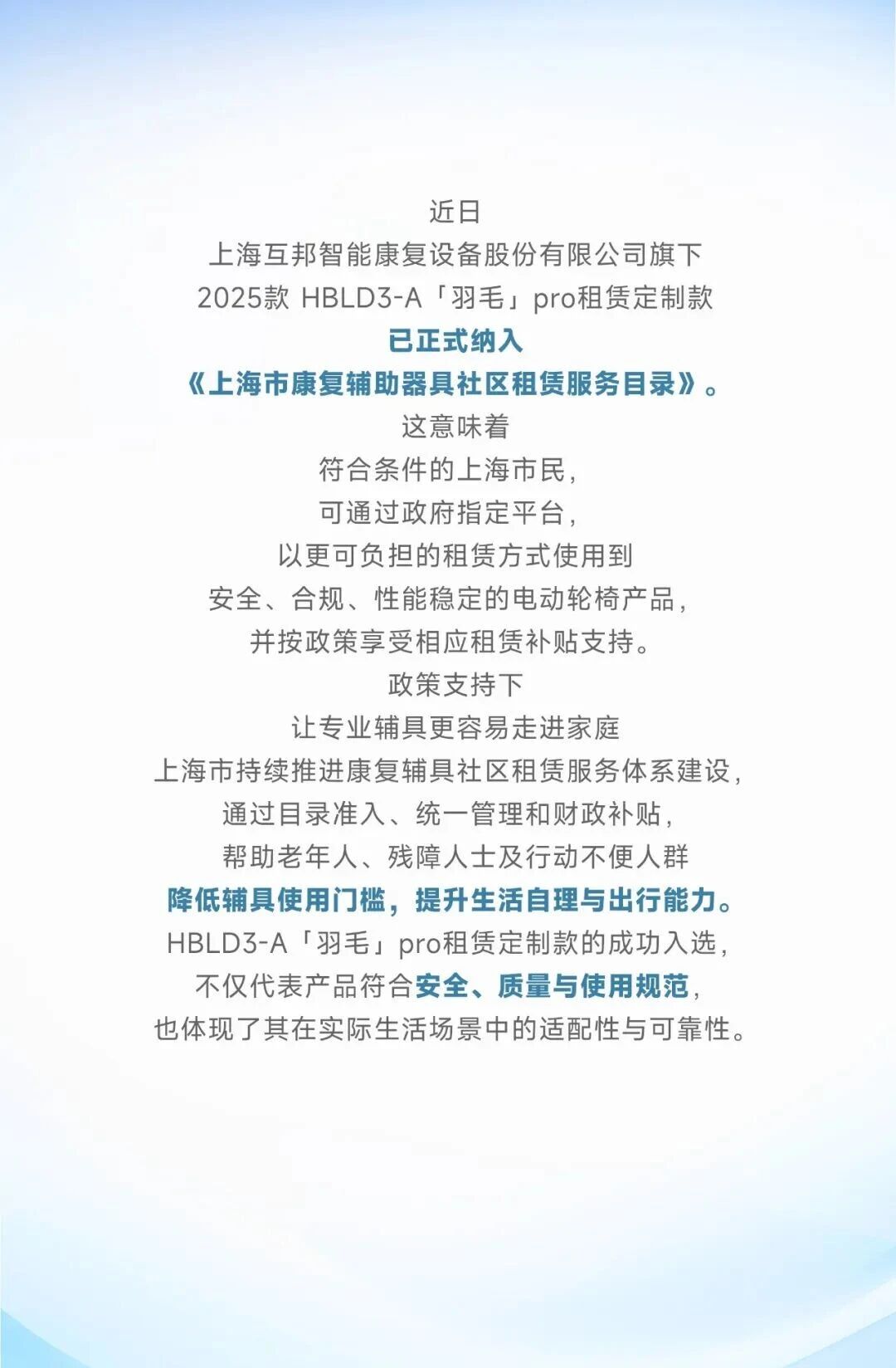 目前,HBLD3-A「羽毛」租赁定制款已正式纳入上海康复辅具社区租赁服务体系,覆盖全市 220+ 社区租赁点,实现 216 个街镇服务覆盖。如您或家人有相关需求,可通过以下官方渠道查询并申请: