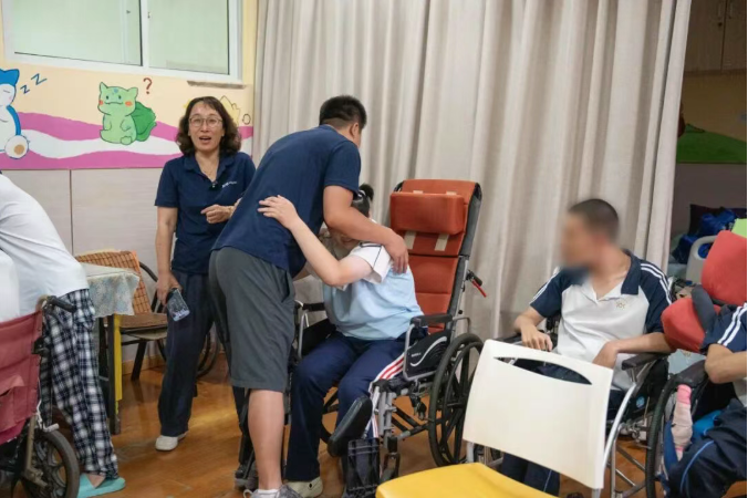 在老师的引导下,我们继续探访园内。一楼的景象令人动容——这里是重残区,安静中透着坚韧。我们聆听老师讲述孩子们的故事,注视那些因疾病困于床榻却依然眼神明亮的孩子。那一刻,复杂的情绪涌上心头:既心疼他们年幼却承受病痛,又敬佩他们在艰难中依然保持对生活的期待。